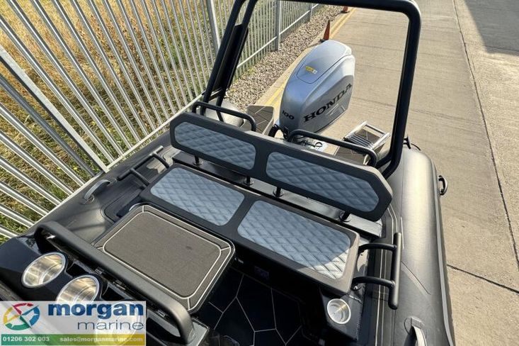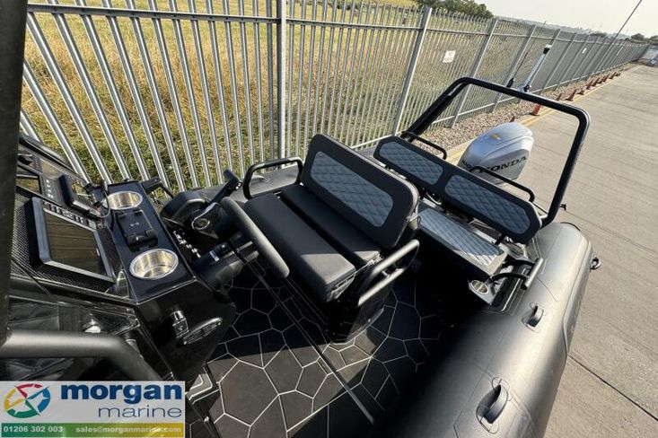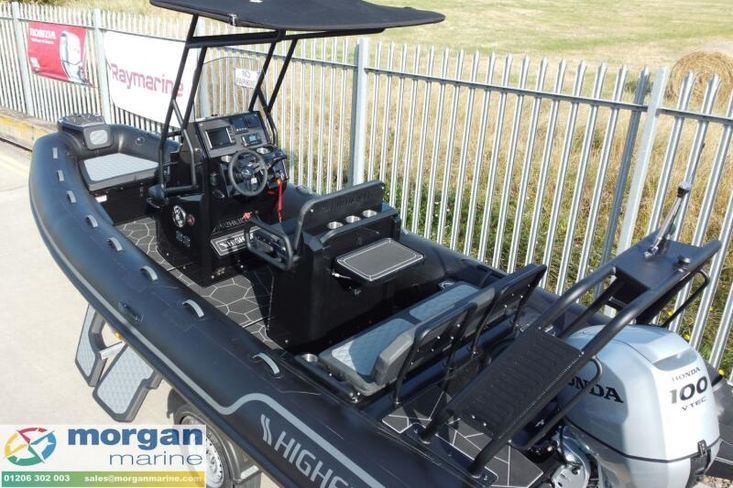 Highfield Sport 560 aluminium RIB with Honda BF100 outboard and capacity of 12, this is in our opinion the BEST 5.6m RIB on the market, it offers breath taking performance and handling thanks to its ingenious Aluminium hull design. The Highfield Sport 560 feels like a 6 or 7m RIB thanks to its vast amount of storage and seating. This boat is really equipped with everything you need from Garmin 65cv chart plotter, VHF radio, Fusion audio system, Console, swim platform, A-frame, Aluminium T-Top with fabric top, sun deck, PVC tubes and Black and Grey EVA decking. With the impermeable qualities of the aluminium hull, you dont have to worry about gel coats chips, or putting the boat on a trailer or on the beach. Design category C. Grey hull.